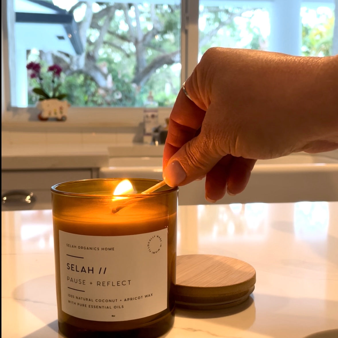 Elevate your home with the serene, spa-like ambiance of our Selah // Pause + Reflect Candle. Crafted from 100% natural coconut and apricot wax and infused with our signature Selah Essential Oil Blend. This candle delivers pure, clean fragrance — no synthetic scents, just the calming, restorative power of nature.